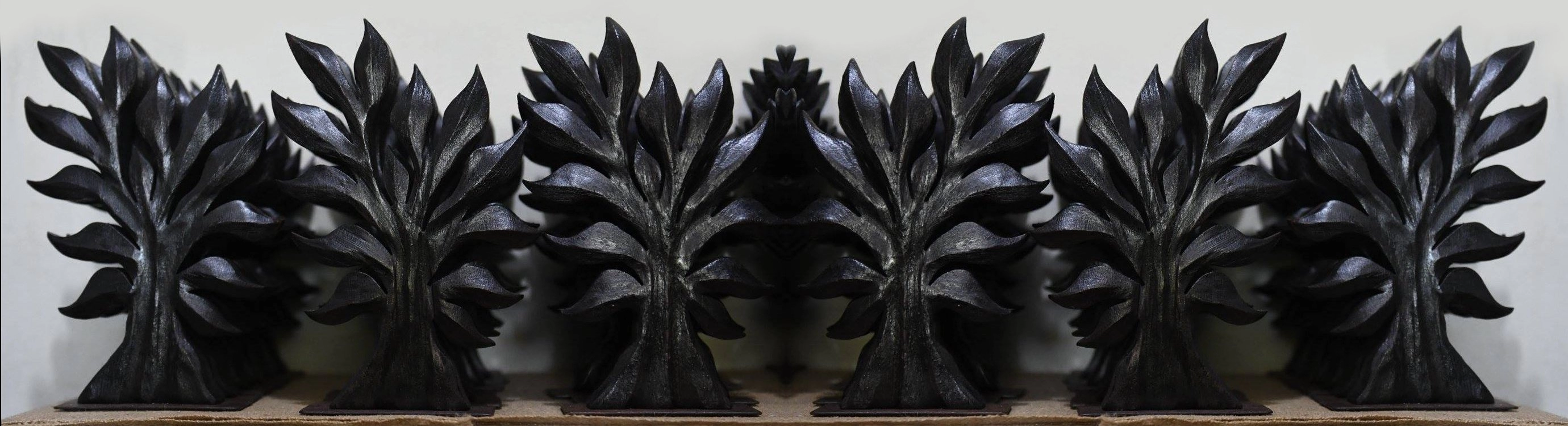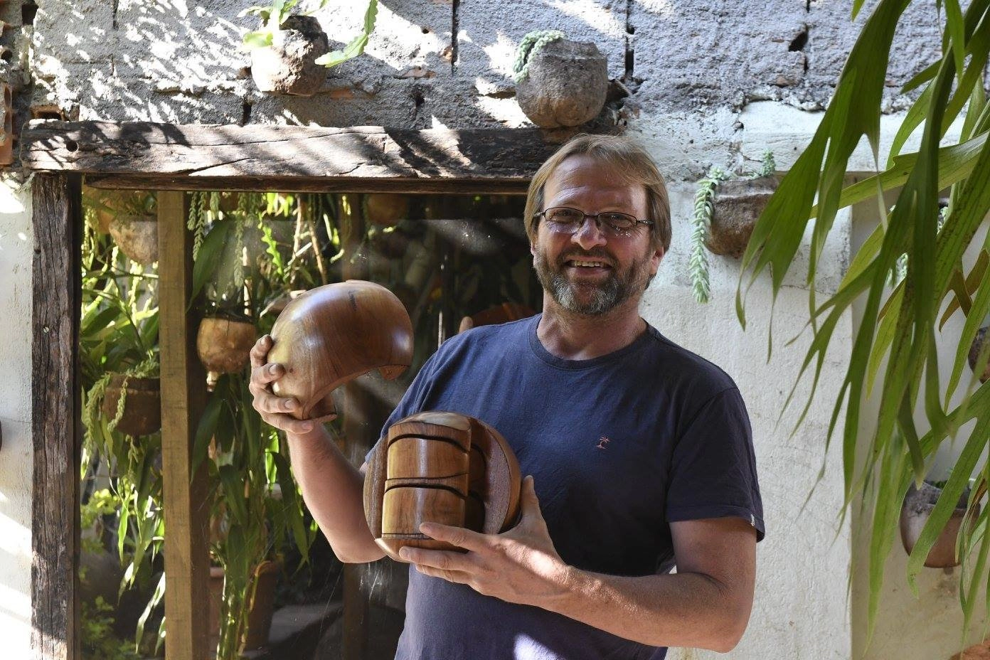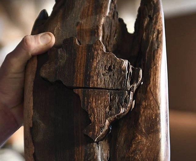 Foi no trato com a madeira que Eduardo Eleutério fincou sua raiz artística. O terreno fértil logo deu frutos, e das mais variadas cepas. A habilidade e a determinação permitiram a ele criar a partir de diversas origens. Linhagens nobres, como jacarandá e o ipê, permeiam o trabalho desenvolvido com materiais oriundos de podas de árvores feitas pela Prefeitura.
